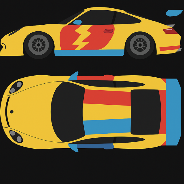 車体を駆け抜ける稲妻モチーフは、瞬発力とスピード感、そして見る者の心にインパクトを与える存在感を象徴しています。
